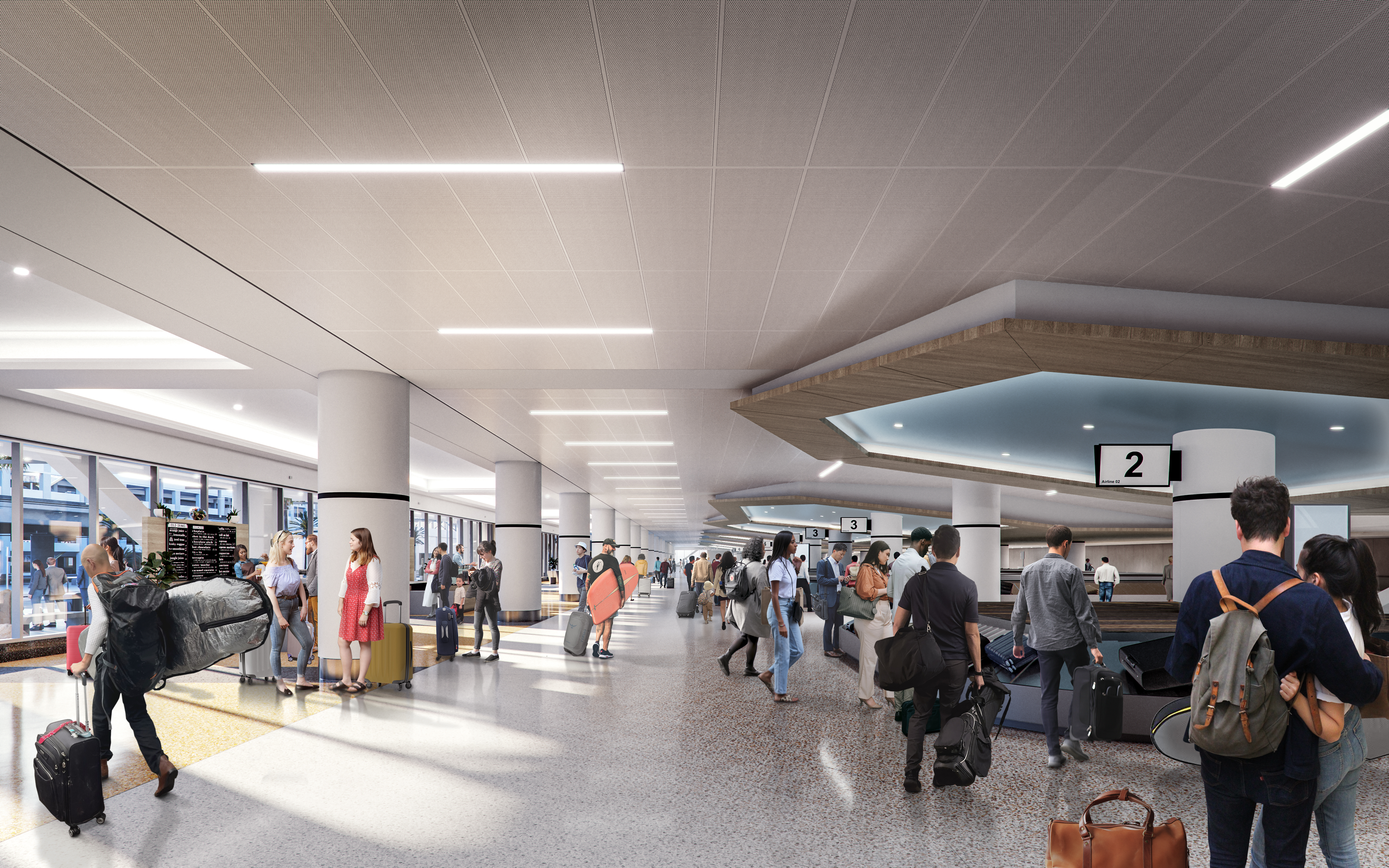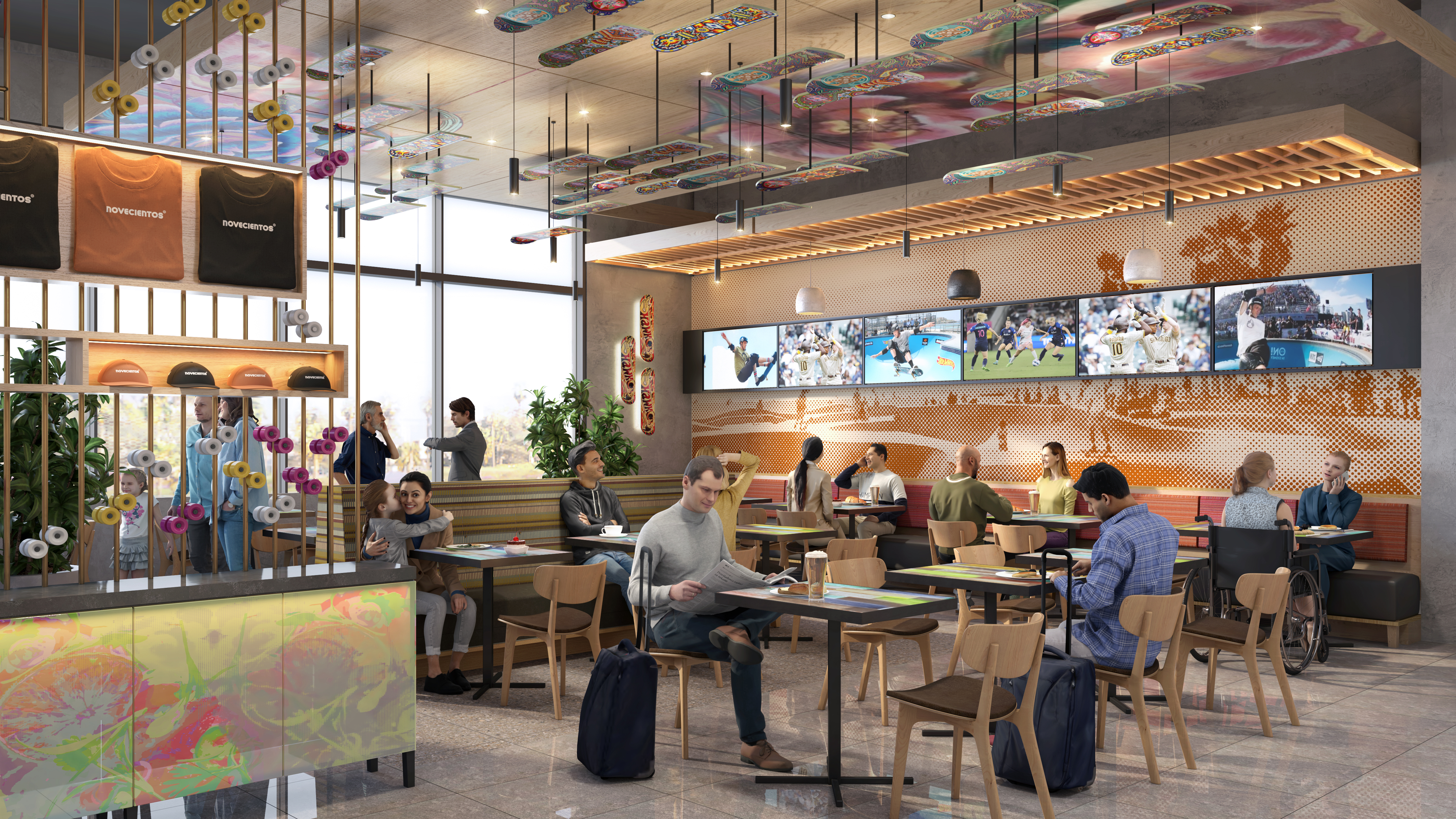 - Retail spaces featuring murals by Chicano artists, bringing storytelling and community into the terminal space.